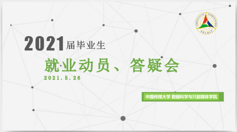 继续教育培训网首页5月26日,数据科学与智能媒体学院召开2021届毕业生就业动员、答疑会。学院辅导员孙剑仪老师,本科毕业班应用统计学专业班主任李波老师以及2021届本科、研究生毕业生参加会议。
