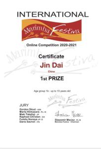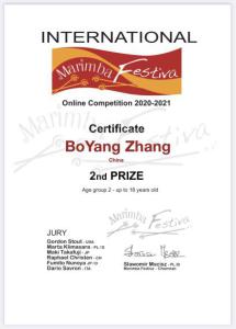 2021年4月在德国班贝格国际马林巴节在线比赛中获(18岁以下组别)第二名。