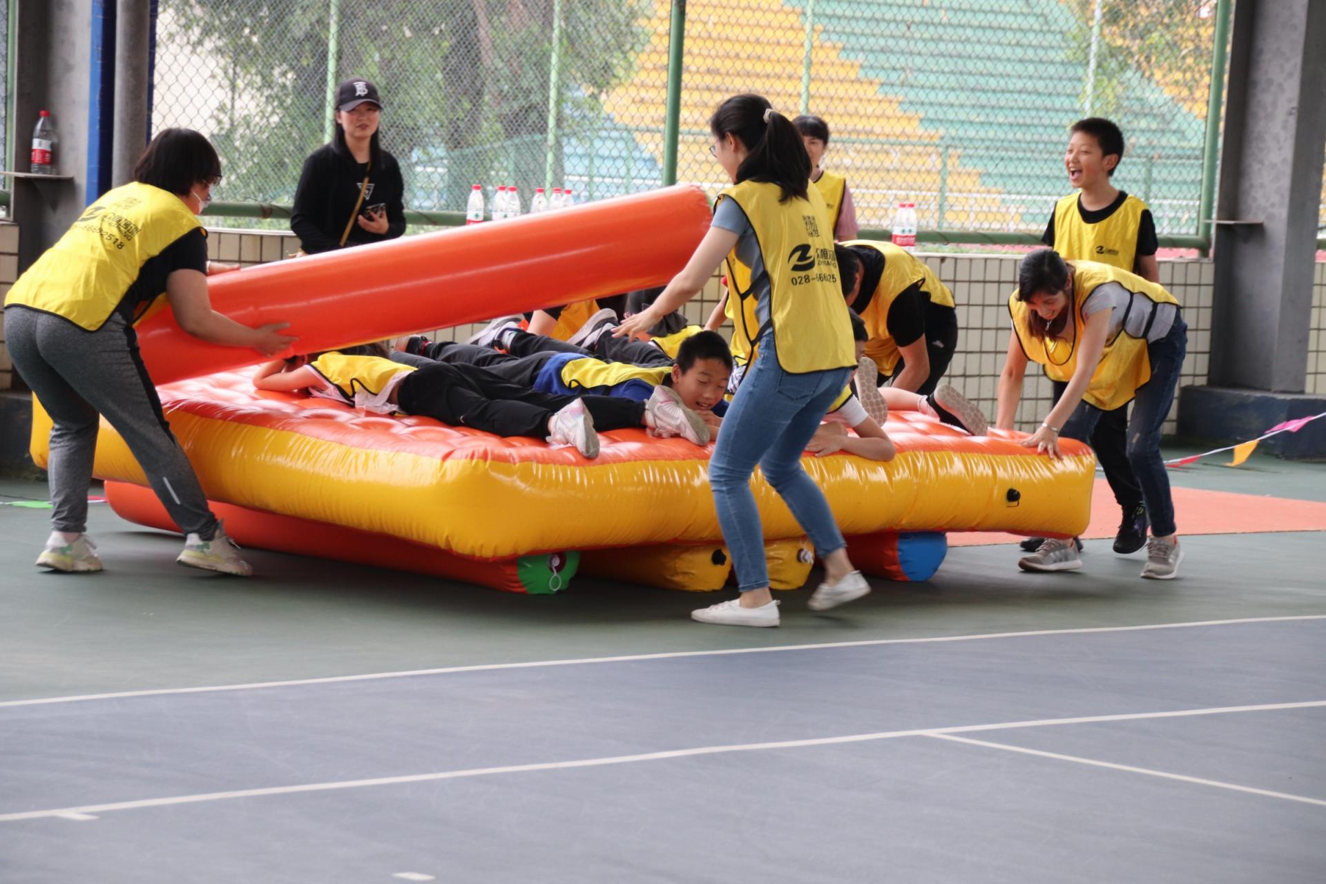 首先进行的游戏是“龙行天下”,孩子们和家长骑在毛毛虫道具上,裁判一声令下,大家卯足了劲,齐声喊着“一二,一二”,奋力跑向终点。随后进行的是“车轮滚滚”游戏,孩子们坐在气垫上,家长们接力移动横木,将孩子们送到终点,充分体现了团队协助能力。最后进行的是“珠行万里”,孩子们和家长用PVC管搭建“管道”小心翼翼的将兵乓球运送到终点,考验了家长和孩子的默契度!