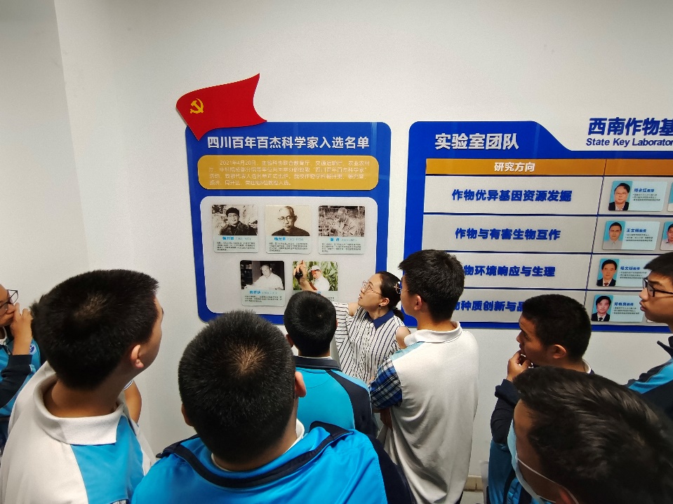 活动期间,212名初三学生在成都新世纪外国语学校学生部主任李星及唐启前老师、各位班主任的组织下走进西南作物基因资源发掘与利用国家重点实验室。实验室主任陈学伟教授亲自为同学们讲解作物学科发展与粮食安全营养的联系,激发了学生知农爱农意识,对粮食安全有了更深的认识。