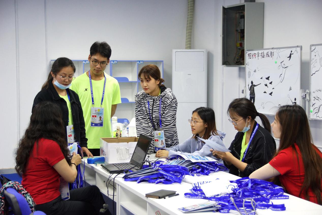 咨询电话:“您好!赛事通道请往这边走”“请勿使用闪光灯拍照,这样会影响运动员视力”“请间隔入座”“您好!请这边扫码领餐”“餐食咸淡还可以吗”……一声声温馨的提示,一句句略带沙哑的问候萦绕在每位参加第24届中国大学生羽毛球锦标赛的运动员和观众的耳边。5月25日至30日,我校100名志愿者全程参与到“相约幸福成都”第24届中国大学生羽毛球锦标赛丁组(超级组)赛事的志愿服务保障工作中。