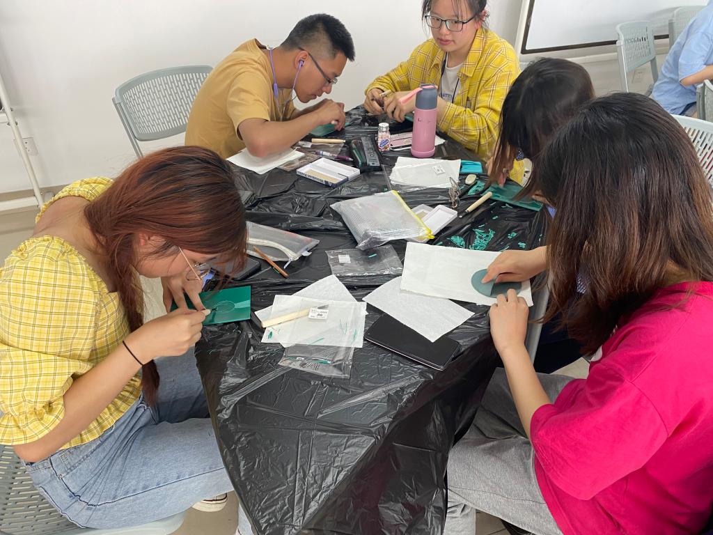 五个工作坊主题分别为:中日影片鉴赏、卷王如何走向国际、中外茶艺文化鉴赏、意大利陶文化大览、欧洲版画互动体验。“中日影片鉴赏”工作坊旨在通过中国、日本电影的场景比较分析,呈现中日文化的具体差异点。园艺学院李瑜老师作为活动嘉宾,结合影片讲解了日本文化,并分享自己的留学生活体验,让同学了解真实的日本。在“卷王如何走向国际”工作坊中,学生国际交流中心展示了墨西哥的风景、人文、建筑风格及手工制品,并带领同学一起制作了墨西哥taco,共同感受墨西哥文化中兼容并包、传统与现代共存的理念。园艺学院茶艺队的同学在“中外茶艺文化鉴赏”工作坊中展示了中国传统茶艺表演,介绍了日本、韩国、美国、英国的茶道文化及中外茶文化的异同。参与同学尝试了盖碗冲泡正山小种和调制奶茶、柠檬红茶。意大利陶文化大览工作坊邀请艺术设计专业老师现场讲解陶艺的魅力与发展史,着重讲解了意大利马约里卡陶瓷的历史由来、介绍了精美展品及其在欧洲陶瓷史上的重要意义,并指导学生制作陶艺作品。“欧洲版画互动体验”工作坊介绍了版画这一艺术门类,参与同学在老师的指导下刻制了版画,收获了独特体验。