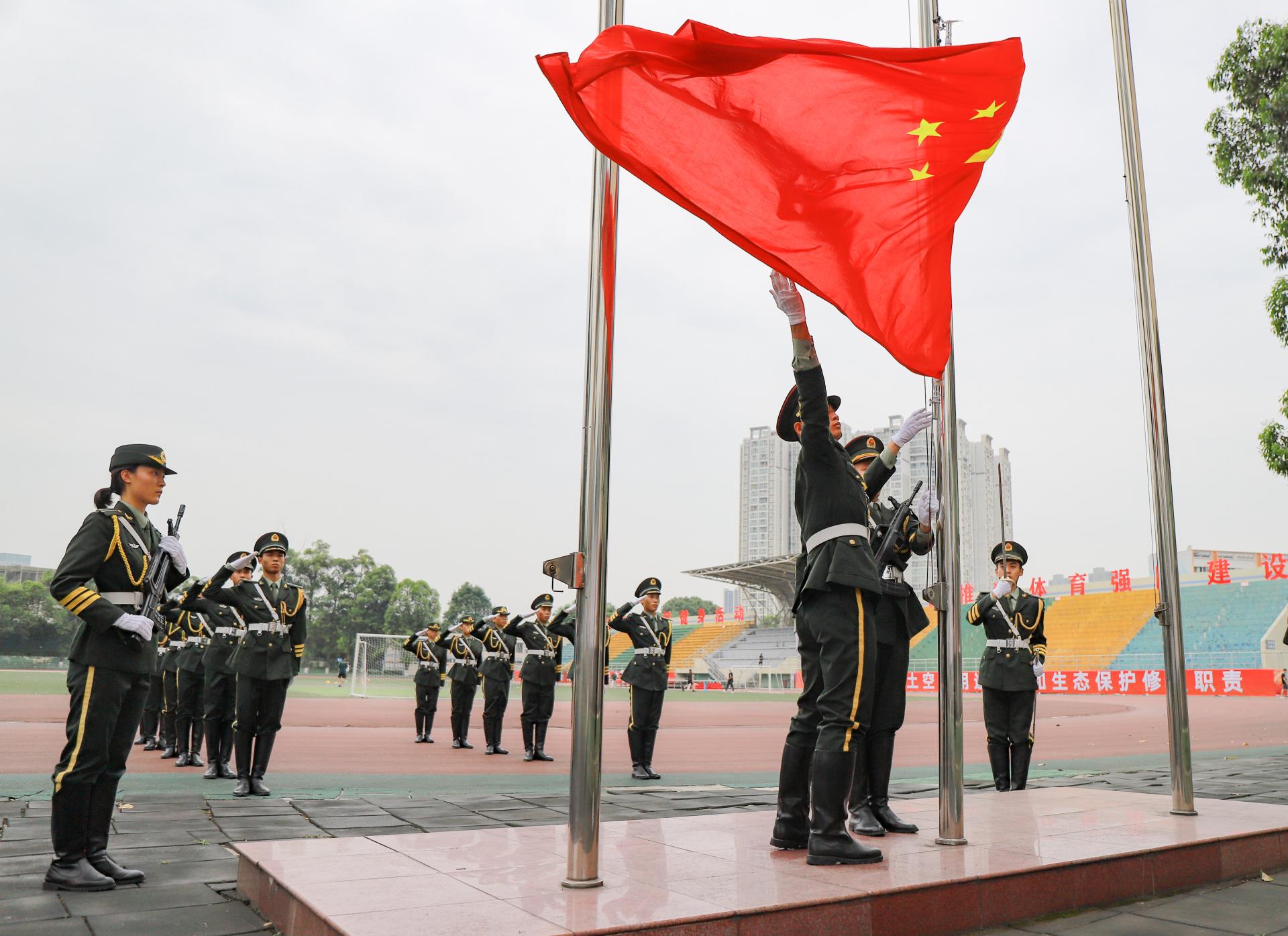 在嘹亮的国歌奏唱声中,鲜艳的五星红旗冉冉升起,全体党员师生面向国旗庄严肃立,齐唱国歌、行注目礼,心中漾起崇高的爱国之情。