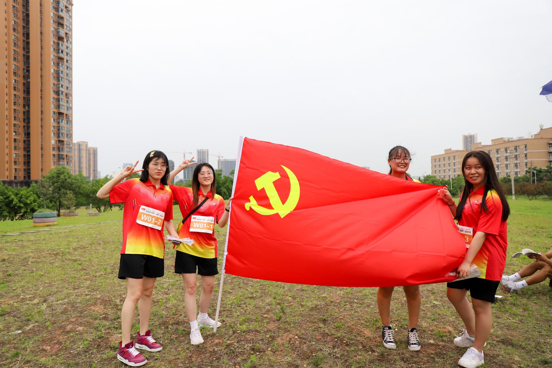 各参赛队伍精神饱满,整装待发,按次序检录入场。在比赛过程中,团队成员互帮互助,沿着“百年征程、红色精神、不忘初心、红动理工”四条定向运动路线,开展“找寻物资”“党史问答”“突出重围”等活动项目,参与“支援前线”“穿越火线”“窃取情报”等趣味游戏,大家在游戏中学习党史,感悟党的艰苦历程。“横渡长江” “突出重围”等环节十分考验队员之间的默契,但队员们都沉着冷静,完美配合;在“攻占高地”环节,各参赛小组到达东区高地一起挥动红旗,合影打卡,每个人脸上都洋溢着喜悦的笑容。党员师生在学校跑出了一道“红色风景”,掀起了一股“红色海浪”。