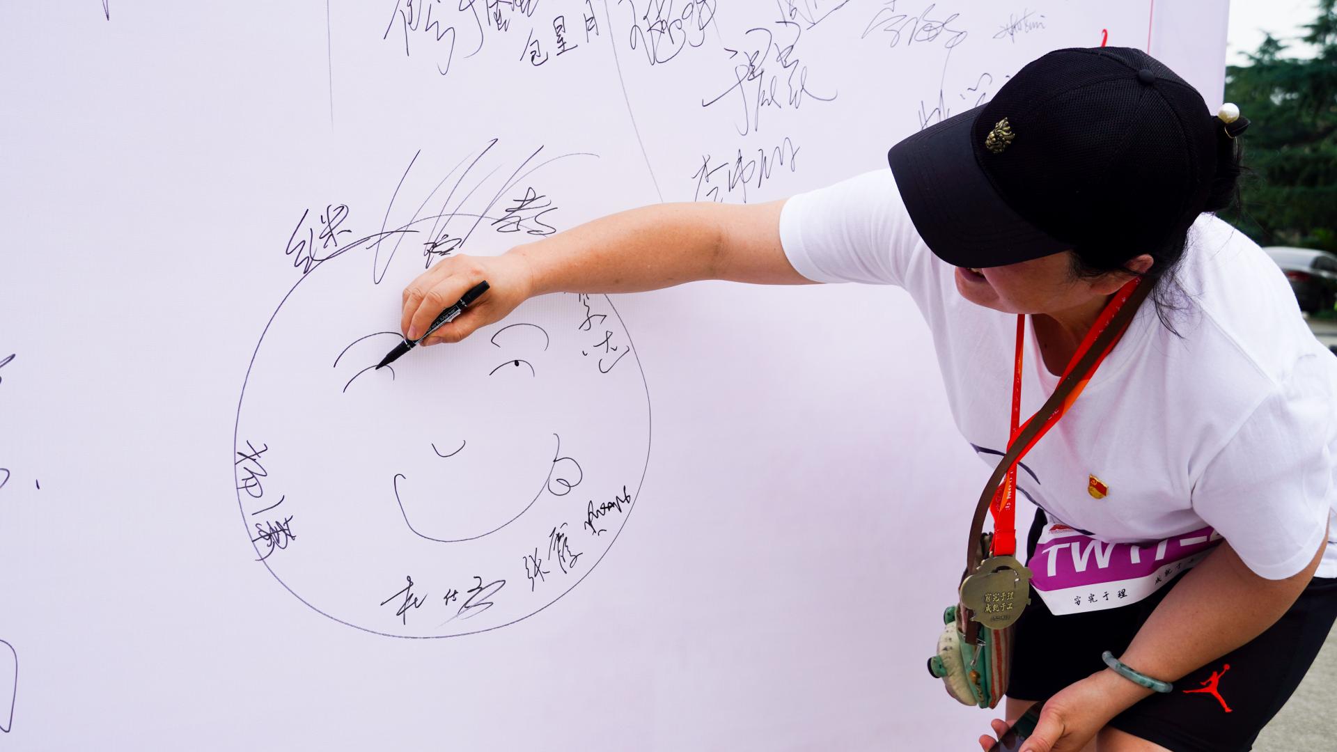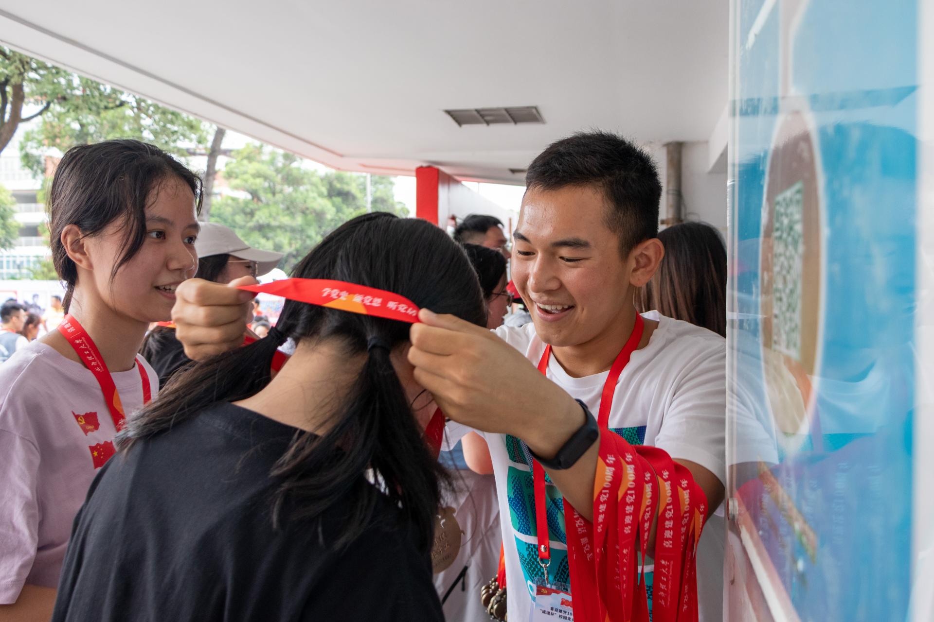 赛后,师生党员在“追忆百年党史 传承体育精神”中国体育发展史图文展前驻足观看,并在签名墙签名、与党旗同框留影。