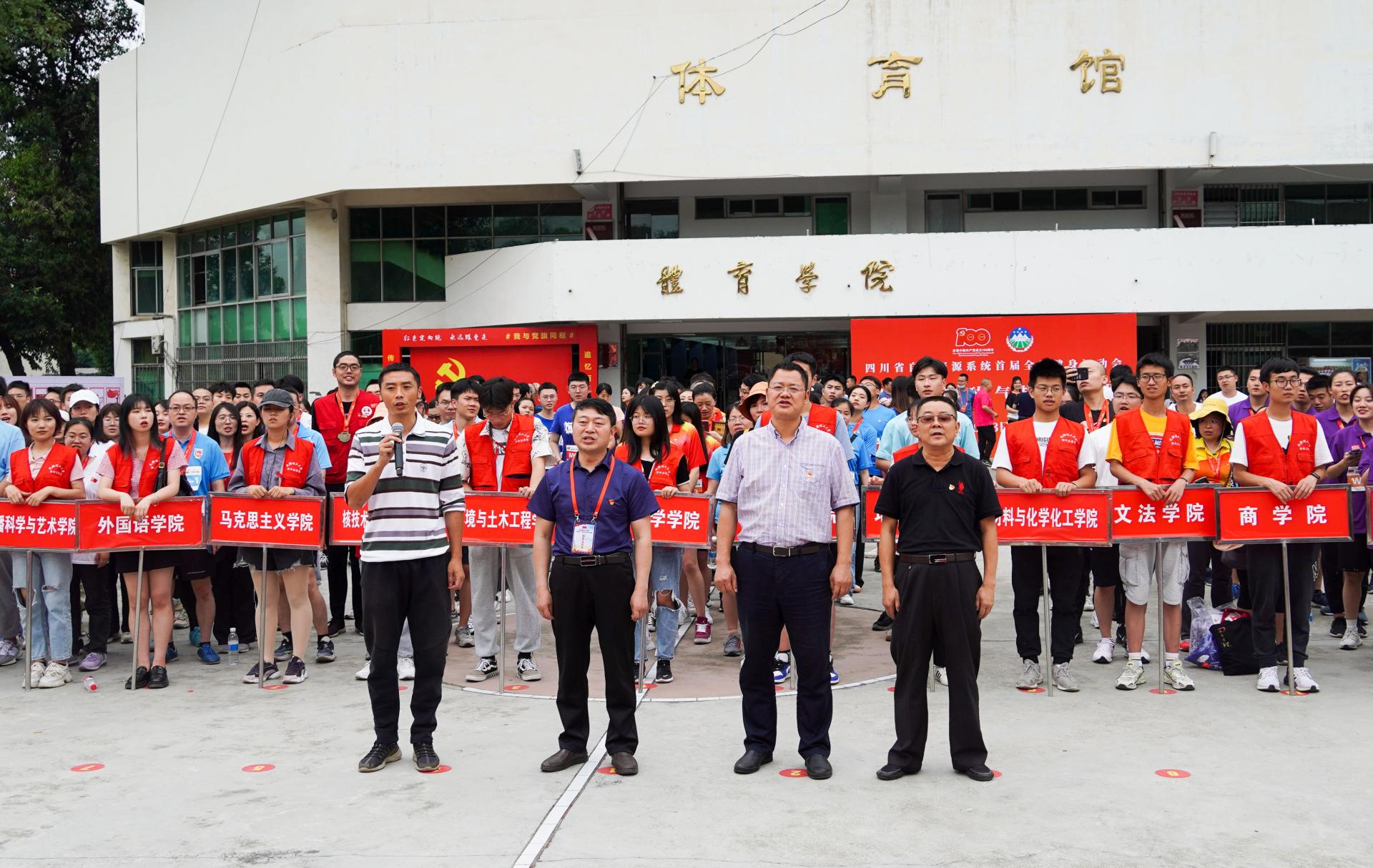 校党委常委、副校长巨能攀致开幕词。他表示,在党的全面领导下,中国体育取得了举世瞩目的辉煌成就,从“东亚病夫”到体育大国,从体育大国迈向体育强国、健康中国,体育事业正在成为中华民族伟大复兴的一个标志性事业。成都理工大学作为“双一流”建设高校,在弘扬体育文化、传承体育精神、丰富校园生活、促进师生健康等方面成绩显著。“校园定向运动”作为智慧型体育项目,强调智力与体力并重,不仅能锻炼身体素质、提高体能,还能增强环境适应力和自我判断力,促进身心健康。他希望,大家在比赛中通力合作、奋勇拼搏,赛出风格、赛出风采、赛出水平,在提升身体素质、团队合作能力的同时,重温百年辉煌党史、传承红色基因、厚植爱国情怀,将党史学习教育内化于心,外化于行,进一步坚定信仰、砥砺品格,勇于担当、以崭新的风貌、磅礴的力量,为国家富强、民族复兴、人民幸福、学校发展贡献力量,以优异成绩向党的百年华诞献礼。