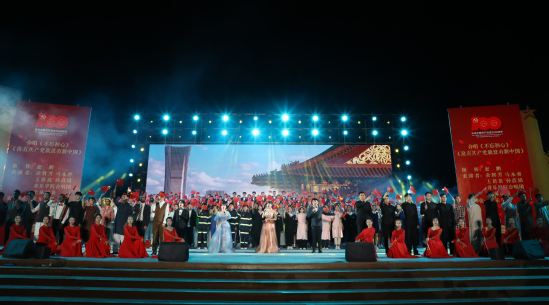 晚会以百年党史为背景,紧紧围绕“青春心向党·雅言诵华章”主题,通过纵览中国共产党成立以来的重要历史事件,串联起党的百年奋斗历程。来自历史文化学院、旅游学院、舞蹈学院等12个基层学院团委的500余名团员青年以诵读、舞蹈、歌曲、舞台剧、合唱等多种艺术形式,以昂扬的精神,饱含深情地演绎了《南湖·初心》《无名的功勋》《信仰如炬》《伟大的觉醒》《新的天地》《爱在远山》《我们都是护旗手》《不忘初心》等14个经典作品,重温了中国共产党从南湖红船的启航到天安门城楼的庄严宣告、从南巡讲话的春天到民族伟大复兴的中国梦,再现了先辈们崇高的革命信仰和救国救民的不懈追求。在全场高唱《没有共产党就没有新中国》的歌声中展演落下帷幕。
