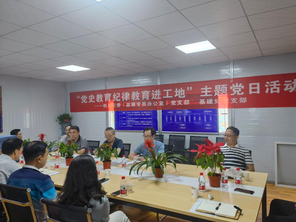 参观施工现场后,全体党员在工地会议室进行党史教育纪律教育集体学习。与会人员共同学习了党史专家曲青山的文章《从党的百年历史中汲取智慧和力量》,大家对全面把握党的一百年波澜壮阔历史,坚定党的历史自信,坚持初心和使命、坚持实事求是、坚持民主集中制、坚持批评和自我批评有了更加全面地认识。结合贯彻落实全省教育系统两个专项整治工作推进会精神,校纪委副书记孙晓春领学了专项整治工作有关文件精神,介绍学校去年以来专项整治工作开展情况,为巩固整治成果,推动专项整治工作进一步走深走实,下一步要加强与基建处协作,深入推进专项整治工作,严格落实领导干部违规插手干预工程项目记录制度和责任追究制度,切实加强对权力的制约和监督,确保专项整治工作取得实效。