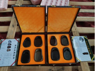 在中国所产的四大名砚中,尤以广东省端砚最为称著。因其出产于唐代初期端州(今广东肇庆市东郊的端溪),故名端砚,距今已有一千三百多年的历史。中国传统文化中的文房四宝,砚为其一。端砚为“中国四大名砚”之首,以致密坚实幼嫩、细腻,温润如玉的石质,独特而丰富多彩的石品花纹以及巧夺天工的雕刻艺术而闻名于世。并具有质柔而刚按之如小儿肌肤,摩之寂寂无声响,用手按其砚心,砚心湛蓝墨绿,水气久久不干等特点。另外 端砚还贮水不凅,呵气即可研墨,其墨汁细滑、书写流畅不损毫,字迹颜色经久不变。其原料端砚石出产至广东省肇庆市东部的烂柯山和肇庆市七星岩北面(西起小湘峡,东至鼎湖山)的北岭山一带,尤以老坑、麻子坑和坑仔岩三地之砚石为最佳。