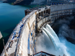 白鹤滩水电站工程全线浇筑到顶航拍画面