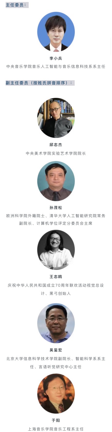 继续教育培训网首页2021年6月6日上午,中国人工智能学会(CAAI)艺术与人工智能专委会正式成立,我校俞峰校长担任专委会名誉主任、学术委员会主席,戴琼海院士、管晓宏院士担任专委会顾问,音乐人工智能系主任李小兵教授担任专委会主任委员。