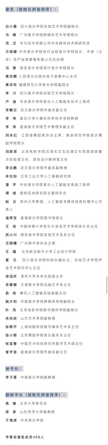经CAAI艺术与人工智能专业委员会选举会议选举产生的专委会组织机构名单如下: