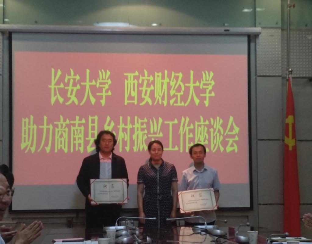 座谈会上,刘华通报了商南县乡村振兴工作情况;朱杰君介绍了长安大学、西安财经大学合力助推商南县乡村振兴工作计划;陈志坚、李国武、许水兆共同为商南县乡村振兴研究基地揭牌。