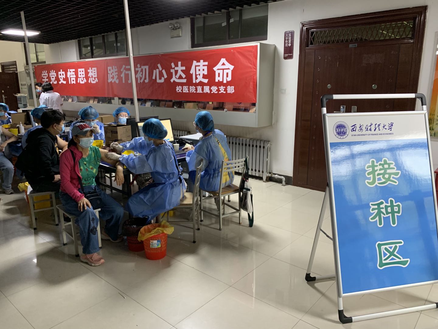 此次接种时间紧,任务急。时值毕业在即、考试临近,为保障教学有序进行,校医院与校内各部门共同努力,将原本计划2天内完成的接种任务,在1天内予以完成。此次接种校医院全体同志、全体志愿者同学连续奋战13小时,轮流吃饭,工作不停。全体医护人员奋勇争先,各司其职,保证了接种工作的有序完成,充分展示了“大爱无疆”的精神,践行了“使命必达”的初心。