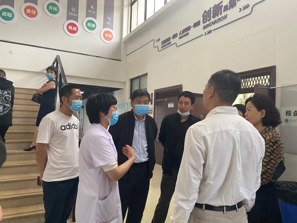 接种期间,副校长孙宝柱来到现场,了解接种进度,协调接种问题,为校医院全体医护人员打气,勉励大家发扬一往无前、连续奋斗的精神,完成此次疫苗接种任务。