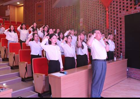 公共事业管理系党支部于跃老师、文法学院2020级硕士研究生第一党支部张茜宁同学先后代表获奖教师和学生发言,回顾了中国共产党走过的百年历程,介绍了入党经历和体会,表达了在学思践悟中坚定理想信念,在奋发有为中践行初心使命的决心。隋永强同志作为领誓人,带领新发展预备党员进行入党宣誓。