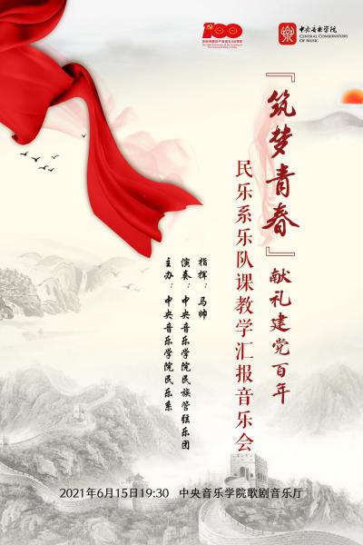 2021年6月15日晚,由中央音乐学院民乐系主办的“筑梦青春”献礼建党百年——民乐系乐队课教学汇报音乐会在中央音乐学院歌剧音乐厅成功上演。