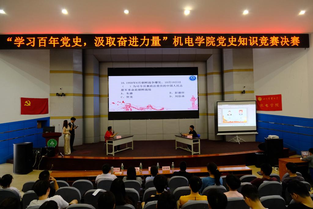 咨询电话:为进一步深化党史学习教育,机电学院于6月21日上午在逸夫楼小礼堂举行“学习百年党史 汲取奋进力量”党史知识竞赛决赛。