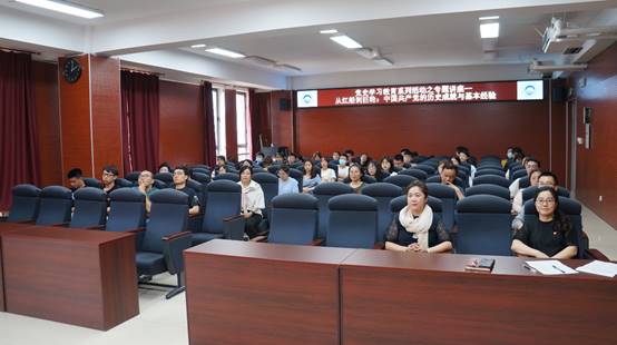 李雪以“从红船到巨轮——中国共产党的历史成就和基本经验”为题,运用清晰的脉络、详实的史实资料,按照“开国气象、变革气象、复兴气象”三个重要时段,带领我们系统回顾了百年来中国共产党走过的光辉历程和取得的辉煌成就,全面介绍了开展党史学习教育的主要内容和必须深刻把握的重点。