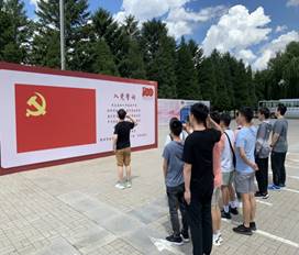 返回学校后,党员们在主楼北广场重温入党誓词,在党旗下接受心灵的净化与洗礼。