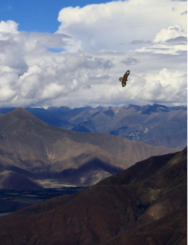 望天上云卷云舒,瞰地上山峦起伏,鹰在万丈高的云海间翱翔,渺小但却自由。
