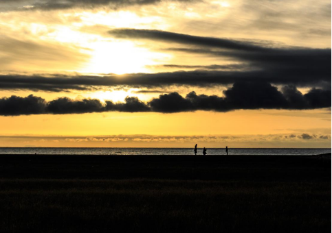 和煦的阳光透过缝隙,给美丽恬静的湖增添了一抹金色的光晕。一家三口漫步在湖边,尽情的享受此刻的光与景。