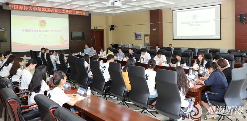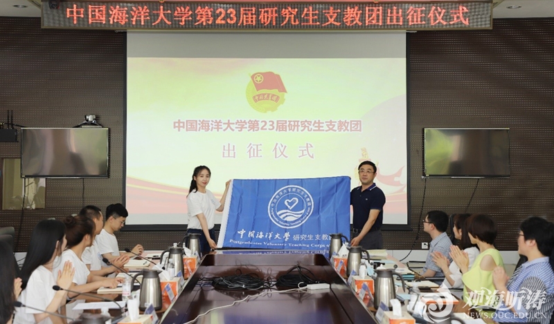 值中国共产党成立100周年之际,6月22日,中国海洋大学第23届研究生支教团出征仪式在崂山校区图书馆第一会议室举行,党委常委、校长助理吴强明出席出征仪式。