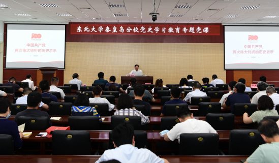 继续教育培训网首页6月21日,秦皇岛分校党史学习教育专题党课在人文楼728室举行。东北大学党委副书记、秦皇岛分校党委书记孙正林讲授题为“中国共产党两次伟大转折的历史启示”的专题党课。分校领导班子成员、中层干部、师生代表参加党课学习。