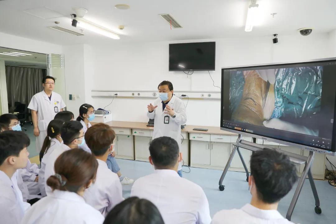 第一临床学院周晓枢副教授在学生虚拟手术操作前进行手术视频讲解