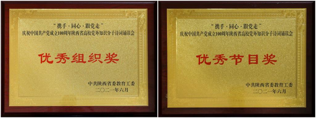 继续教育培训网首页为庆祝中国共产党成立100周年,6月27日,陕西省委教育工委在西北工业大学举办“携手 同心 跟党走”为主题的陕西省高校党外知识分子诗词诵读会。省委统战部副部长崔亦国、省委教育工委副书记陈乃霞,省委统战部党外知识分子工作处处长张亚红、省委教育工委统战部部长孙全学及省级各民主党派负责人、高校分管统战工作校领导、统战部长等200余人参加活动。省委教育工委表彰了参加诵读会的优秀组织单位和优秀节目选送单位,我校荣获“优秀组织奖”和“优秀节目奖”两项表彰。