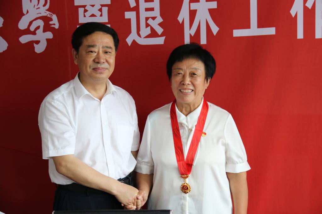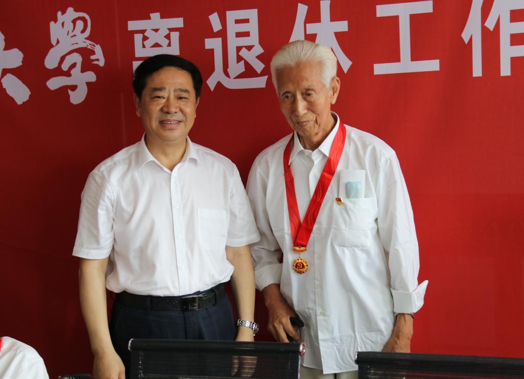 继续教育培训网首页在党的百年华诞即将来临之际,为表达对老党员的关心、关怀和崇高致敬,增强全校党员的荣誉感、归属感和使命感,6月28日下午,学校在和平校区离退休工作处503室召开“光荣在党50年”纪念章颁发仪式暨离退休老同志座谈会。党委书记宫福清、党委副书记闫灵均、党委组织部负责人、“光荣在党50年”老党员代表、离退休党委各支部委员、党员代表出席仪式。会议由党委副书记闫灵均主持。
