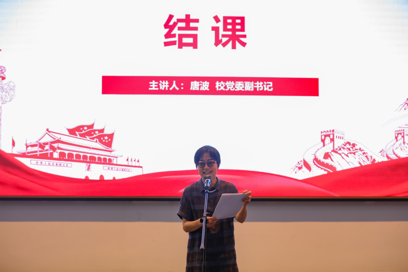 “继往开来,不断发展,真抓实干、久久为功”,唐波作结课总结并带领全体党员重温入党誓词。她从“主题好、内容丰富、准备用心”三方面对党课予以充分肯定。认为机关各部门和广大党员干部有着较高的政治站位、较强的服务意识和勇于奉献的担当精神,希望机关全体党员干部要从党的奋斗历史中汲取前进力量,更加自觉地不忘初心、牢记使命,增强“四个意识”,坚定“四个自信”,坚定理想信念,发扬红色传统,传承红色基因,立足本职岗位,始终坚守为党育人、为国育才的目标方向,切实落实立德树人根本任务,传承华政精神,积极进取、改革创新、攻坚克难、担当作为,为培养担当民族复兴大任的时代新人作出应有的贡献,以更高质量的发展献礼党的百年诞辰。