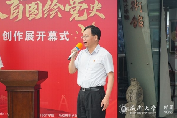 6月28日,由成都大学中国-东盟艺术学院美术与设计学院、马克思主义学院主办的“百人百图绘党史”创作展开幕式在第一教学楼举行。党委书记刘强,党委副书记、纪委书记苏波,党委常委、副校长彭晓琳、王小军出席活动。