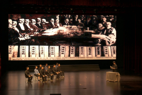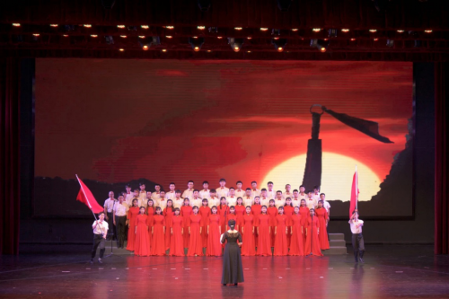 晚会在大合唱《国际歌》中拉开帷幕,嘹亮的歌声回荡在实验剧场上空,那句激动人心的“英特纳雄耐尔就一定要实现”响彻每个人心间。