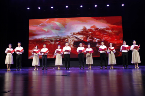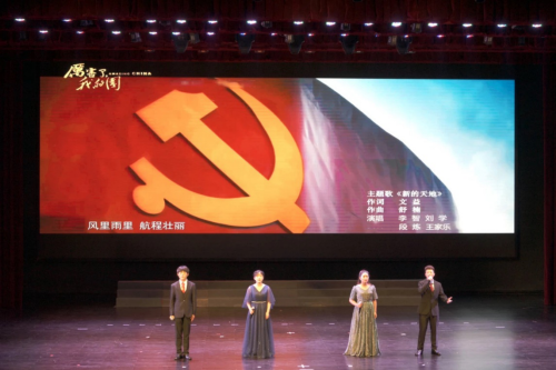 学院领导班子带来的歌曲《没有共产党就没有新中国》用动情的歌词、滚烫的旋律,如旗帜、似号角,坚定着人民跟党走的信念,表达了我们在中国共产党的旗帜下奋勇前进的决心和信念。