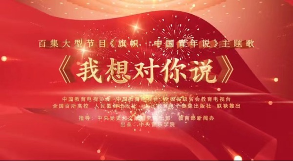 百集大型节目《旗帜·中国青年说》主题歌《我想对你说》由中国教育电视协会、中国教育电视台联手中央音乐学院共同创作录制。著名导演、《旗帜·中国青年说》总编导李安东作词,中央音乐学院作曲系副主任常平作曲,作曲系周佼佼编曲,声歌系学生黄霄云、张超演唱,音乐人工智能与音乐信息科技系段小舟录音,表演艺术中心王炅录音技术支持,由中央音乐学院交响乐团、合唱团演奏。词曲创作以青年人的视角,用音乐的语言诠释青年爱党情怀,和为实现中华民族伟大复兴的中国梦而拼搏奋斗的决心。