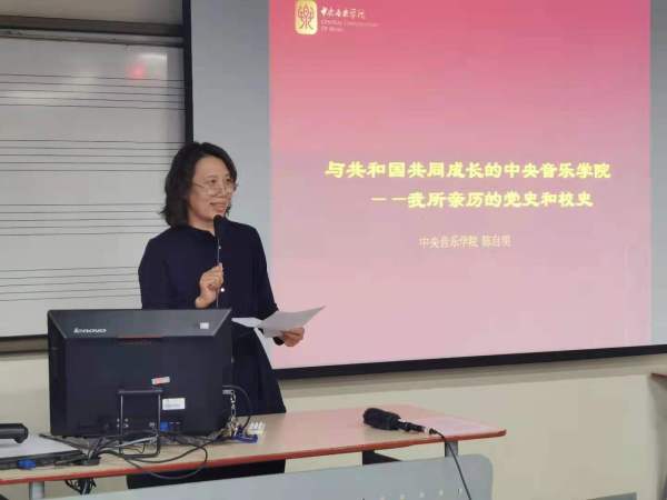 2021年6月9日上午10:00,中央音乐学院原党委书记、89岁高龄的陈自明教授在学校教学楼409为师生做“与共和国共同成长的中央音乐学院——我所亲历的党史和校史”专题报告,讲座由党委宣传部、思想政治理论课教学科研部共同主办,思政部主任顾丽霞教授主持。活动由网络信息中心协办,在中央音乐学院b站直播间、央音视频app同步直播。音乐学、音乐教育、作曲专业研究生一年级的同学一百多人现场聆听讲座。