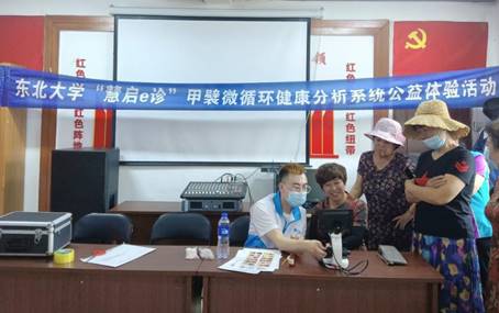 继续教育培训网首页6月25日,东北大学“‘互联网+’慧启e诊――甲襞微循环健康项目”团队在指导教师于亚新带领下,赴沈阳市苏家屯区陈相街道举办东北大学甲襞微循环健康分析系统公益体验活动,国家健康管理师李涛应邀参加。