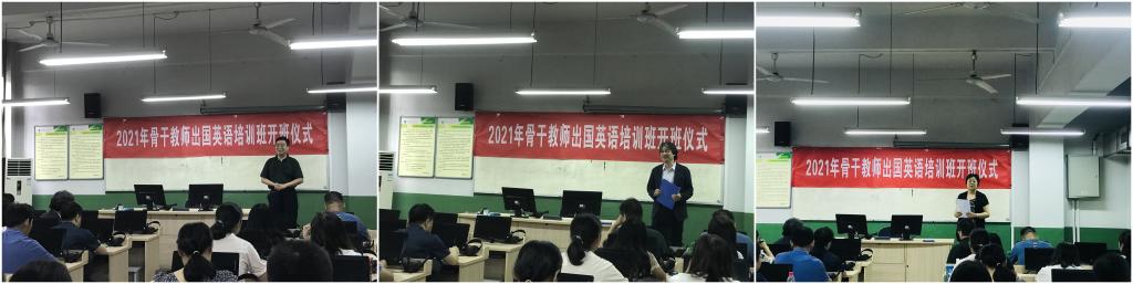 继续教育培训网首页为加快推进我校教师队伍国际化进程,拓展教师国际视野,储备一批具有较高英语水平的骨干教师队伍,7月5日上午,由人事处、国际合作交流处、外国语学院联合举办的2021年骨干教师出国英语培训班在雁塔校区图书馆三楼开班,国际合作交流处、外国语学院主要负责人及33名骨干教师参加开班仪式。仪式由教师发展中心主任、人事处副处长赵红主持。